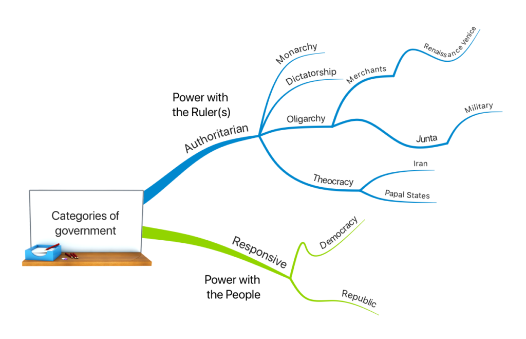 It’s possible to sort governments into categories. The sorting focuses on how a government operates. Two major categories are authoritarian governments and responsive governments.