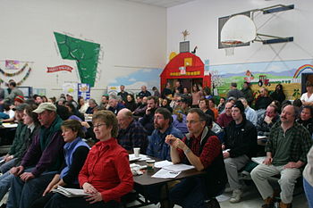 This type of direct democracy was used and still is used in New England villages and small towns. All the citizens gather at a town meeting and vote on all of the village’s business. They elect selectmen to handle the administration of their decisions.